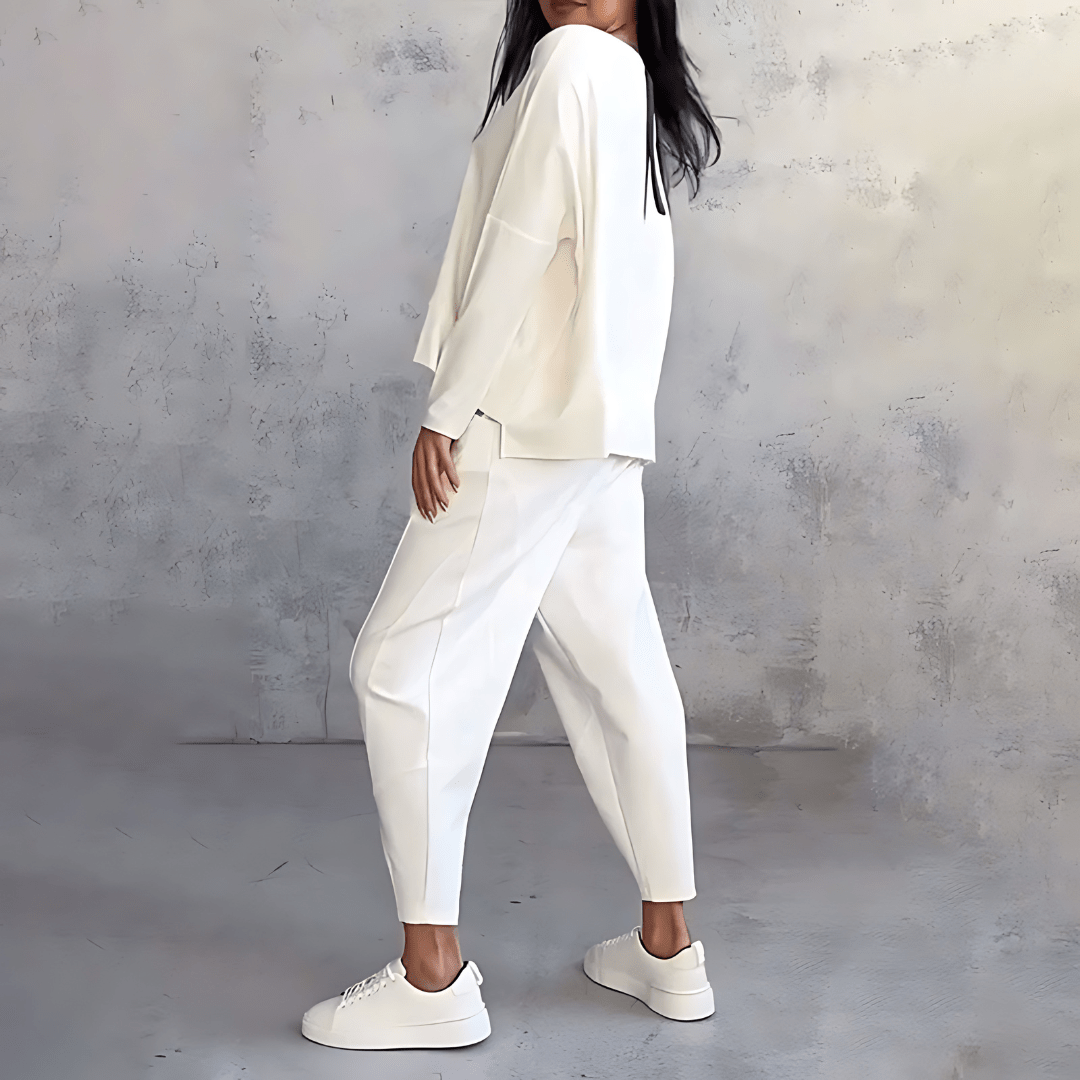 Fall in love with this two-piece set, perfect for an elegant silhouette and absolute comfort. ISABEAU combines simplicity and refinement for modern women seeking a polished look while enjoying all-day ease.