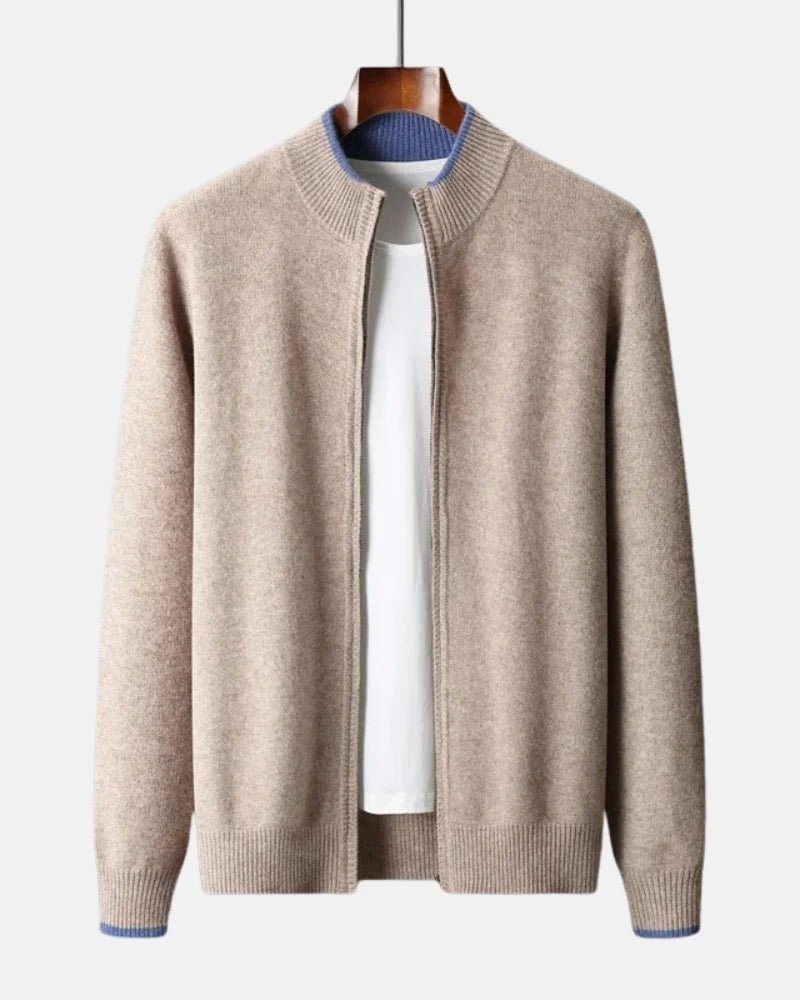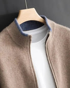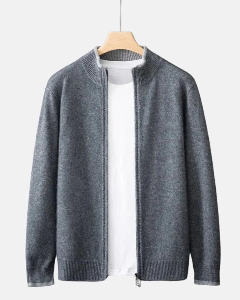Crafted from 100% premium cashmere, this zip-up jacket delivers exceptional softness and warmth. Perfect for layering or wearing on its own, it combines comfort with timeless style.