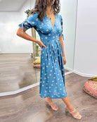 Let your style shine with the Monique™ – a dress that effortlessly combines femininity, comfort, and elegance. Its classic V-neckline, button-front closure, and charming polka dot print create a modern look with a subtle retro nod.